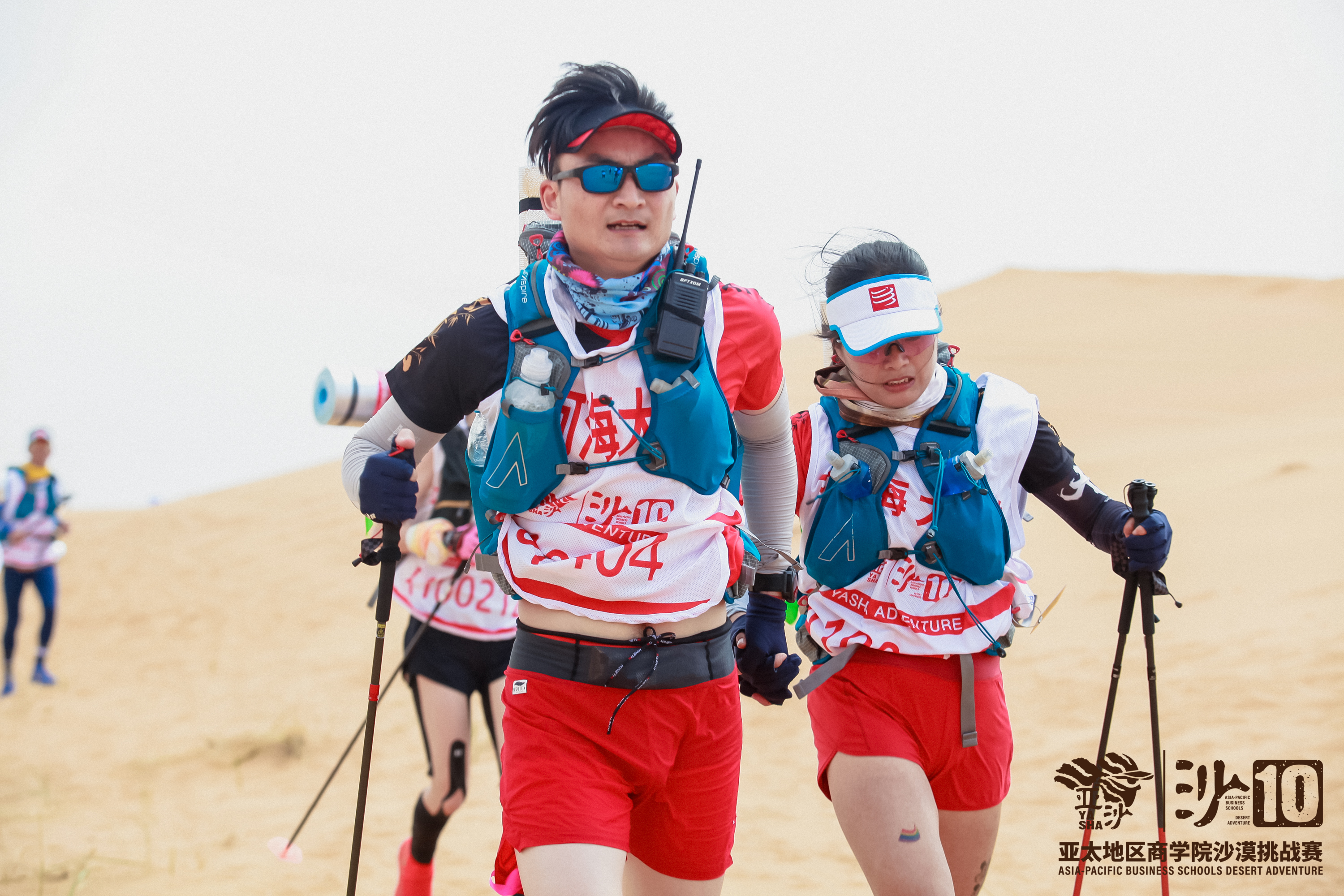 沙漠气候多变,一日可体验四季。三天来,九色 MBA健儿们经历着前所未有的艰苦,体验着从来未有的人生。白天迎着风沙在广漠中奔跑,挑战自我、超越自我;夜晚,在大漠浩瀚的星空下露营,团队小伙伴们相互鼓励、夜谈腾格里。第一天的烈日悬空,第二天的风沙暴起,第三天的和风暖阳,对参赛队员来说,每一天的赛道都是新的挑战,每一刻的脚步都充满了未知。寒风裹着黄沙拍打着队员们的脸庞,汗水和着细沙洒落在队员们长长的脚印。九色 MBA学子以良好的心态走好每一步,充分发挥自身竞技水平,展现沙10团队风采,用毅力和永不妥协的精神一步一步缩短与终点的距离,最终赢得本届赛事最高荣誉“金沙鸥奖”。
