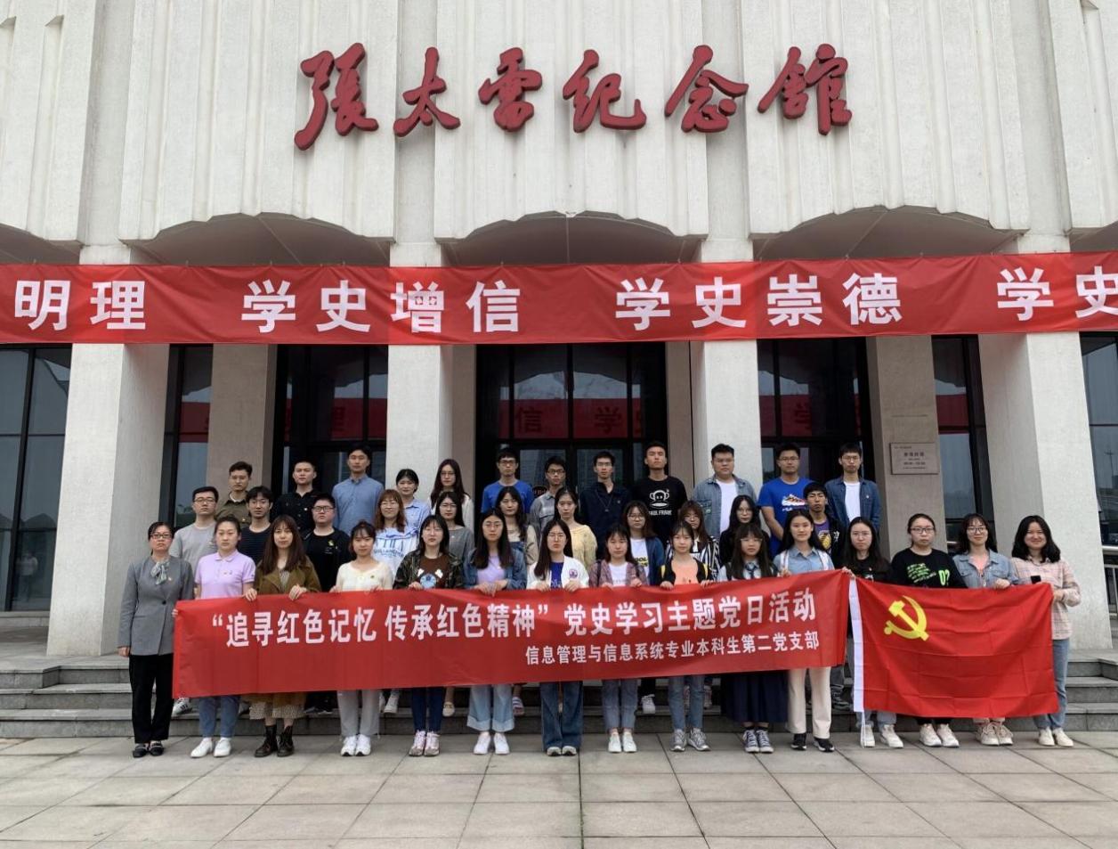 为了将传承弘扬红色文化精神同实地参观学习结合起来,5月13日信息管理与信息系统专业本科生第二党支部来到了张太雷纪念馆,党支部书记左丽老师带领全体党员重温红色记忆,激发支部成员的爱国爱党热情。