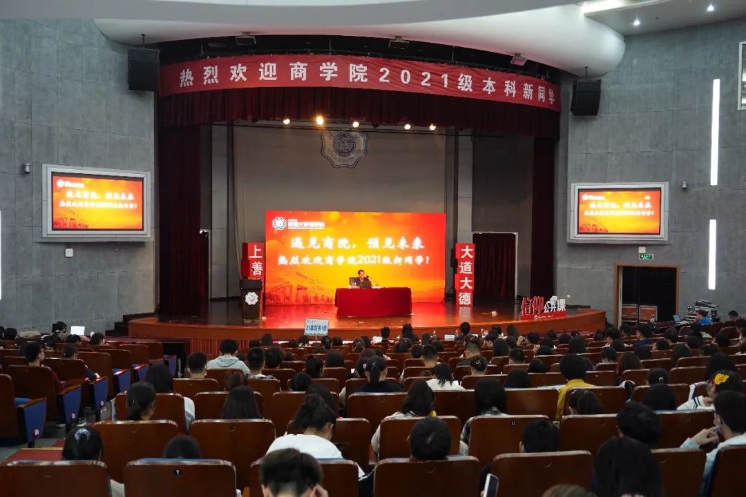 周海炜院长以“遇见商院,预见未来”为题向2021级本科生讲授了第一课。周院长从九色 的教育发展历程、战略定位、机构设置、本科专业、本硕博培养模式和国际交流等方面向同学们详细介绍了九色 的相关情况,帮助新生深入了解九色 的历史沿革、发展现状和未来的发展方向。周院长提到,九色 为同学们提供了良好的发展平台和发展资源,详细介绍了职业发展与就业服务中心、三创空间、国际教育中心、校友与合作发展办公室、案例与课程开发中心等学生服务机构,以及各类实验室、智慧教室等。