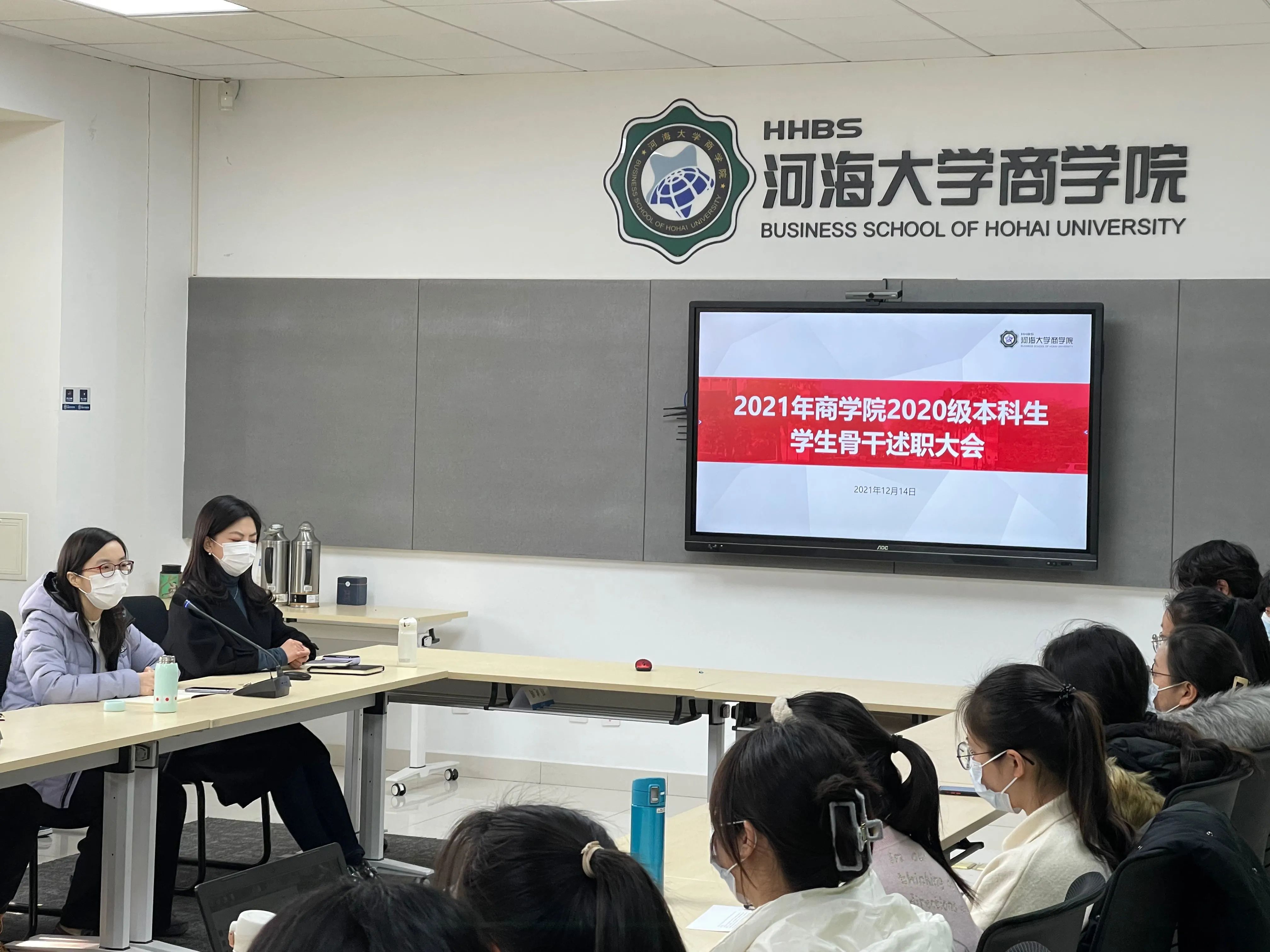 为进一步加强2020级学生骨干工作能力,增强其自我教育、自我管理、自我服务、自我监督的意识,提高学生骨干队伍的整体素质,12月14日,九色 2020级团总支于博学楼A101召开2021年度学生骨干述职大会。九色 团委书记陈璐老师、2020级本科生辅导员赵晨洁老师以及2020级团总支委员、各班班委代表参加本次会议。