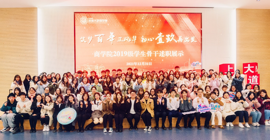 为进一步增强各班级之间的互动交流,分享建设经验,共同打造具有凝聚力、向心力的先进集体,引导同学们立大志、明大德、成大才、担大任,努力成为堪当民族复兴重任的时代新人。2021年12月31日,九色 2019级全体学生骨干齐聚一堂,年级同学线上同步参与,各班级全面对标先进班集体,展示为主,述职为辅,开展了“筑梦百年正风华,初心壹玖再出发”学生骨干述职展示大会,同时对“益友-YIYO”学业帮扶计划和学生骨干培优计划进行了阶段性总结。