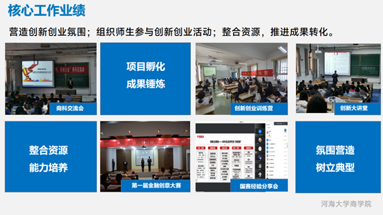 各部门负责人对部门2022年度的特色品牌活动进行了展开介绍,包括金融创意大赛、市场案例分析大赛、科普知识竞赛以及商业精英挑战赛等8项赛事。一方面利用多形式、多类别的创新创业舞台激发学生创新创业热情,另一方面为学生学习掌握的创新创业理论知识提供应用实践平台。