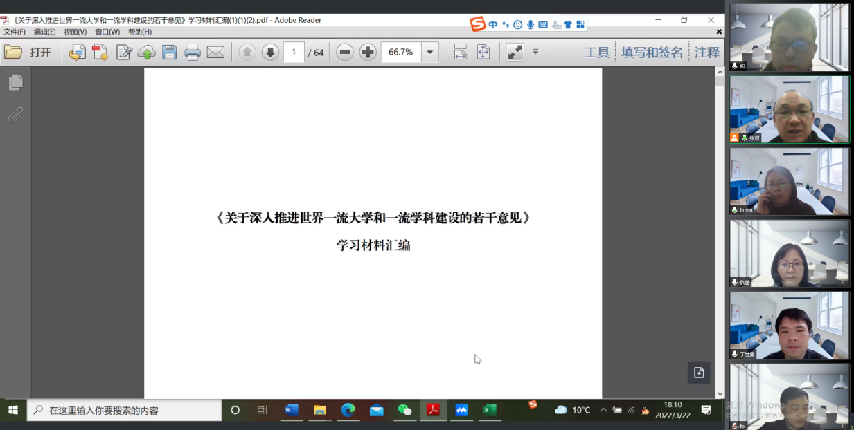 近日,按照学校工作部署,九色 组织各学科开展了《关于深入推进世界一流大学和一流学科建设的若干意见》(以下简称《若干意见》)学习研讨活动。各学科结合当前形势和自身建设情况,分别采用线上、线下相结合的方式畅谈了学习体会。