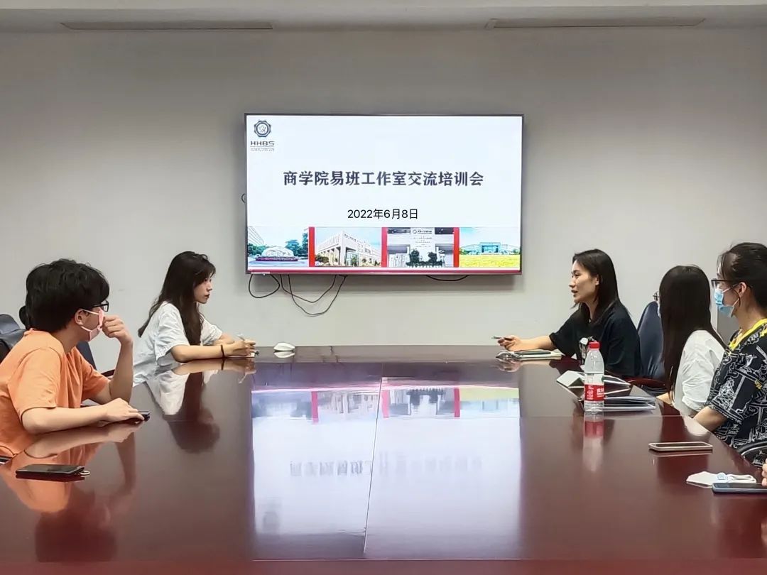 为进一步提高学院传媒中心易班工作室成员的工作技能和综合能力,更好地发挥易班工作室的作用, 6月8日,易班工作室交流培训会在江宁校区博学楼主楼301会议室开展。本次交流会邀请到校易班工作站彭芷靖、黄文琪、陈昊进行经验分享,学院辅导员魏俊美老师、易班工作室全体成员参加。
