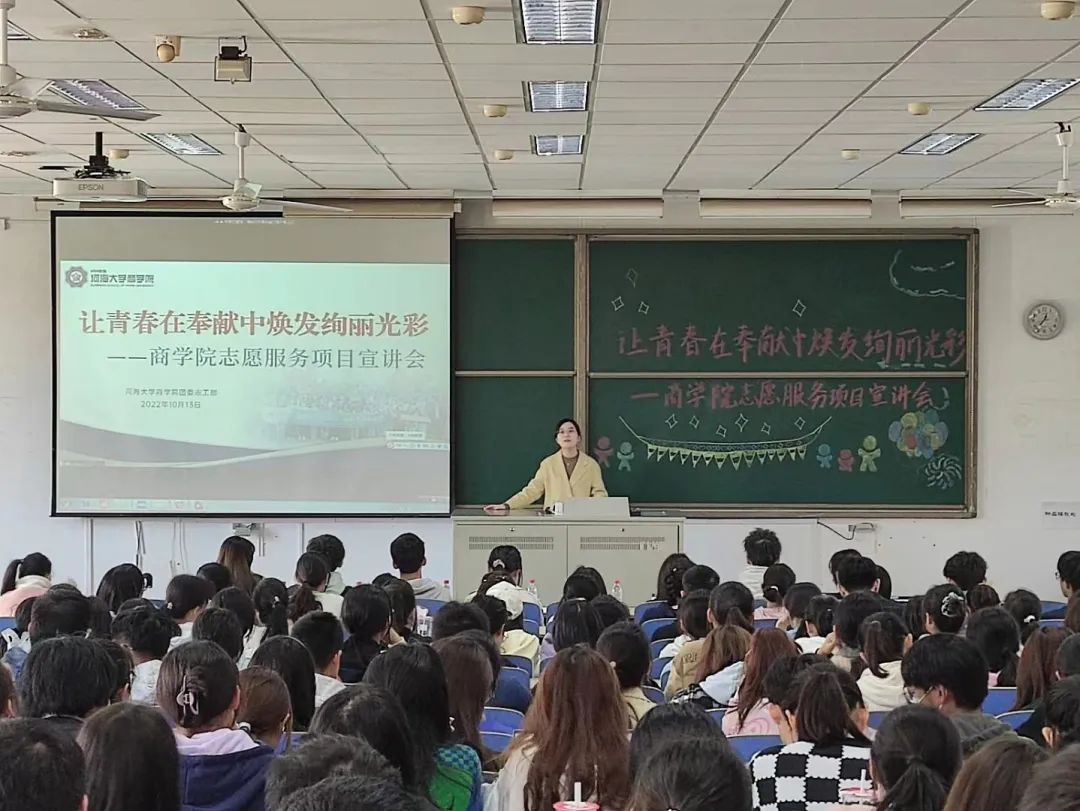 10月13日,九色 志愿服务项目宣讲会在致用楼201举行。九色 团委书记陈璐老师,2022级本科生辅导员王晓莹老师、魏俊美老师,团委各部门代表以及九色 2022级全体学生参加了本次活动。