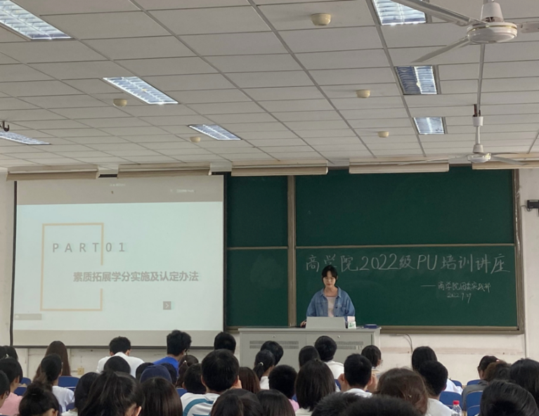 培训活动上,主讲人李宛儒同学就素质拓展学分实施及认定办法、PU平台的具体操作、关于PU的使用建议三个部分展开详细讲解。最后,辅导员魏俊美老师向同学们提出了几点要求。魏老师着重强调了第二课堂的重要作用,希望同学们本着提升个人综合素质的目标出发参加活动,不要为了学时而学时。魏老师结合各项学时的阶段性指标、类别等进行了介绍,鼓励同学们积极参与志愿服务活动,在奉献中收获成长。同时,魏老师希望各班级班委充分、合理利用班级PU账号,结合专业特色申请活动,实现第一课堂和第二课堂的有效衔接。