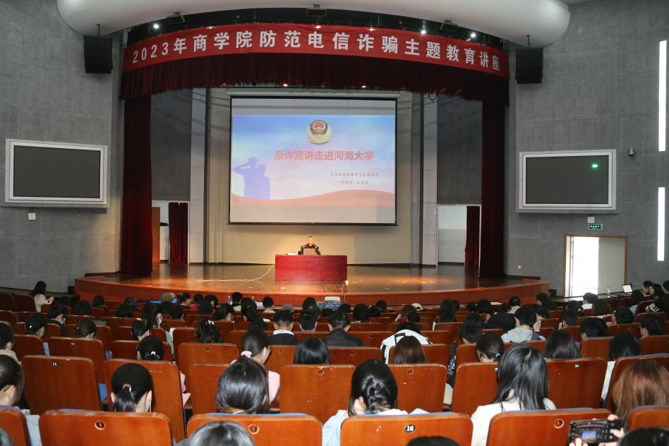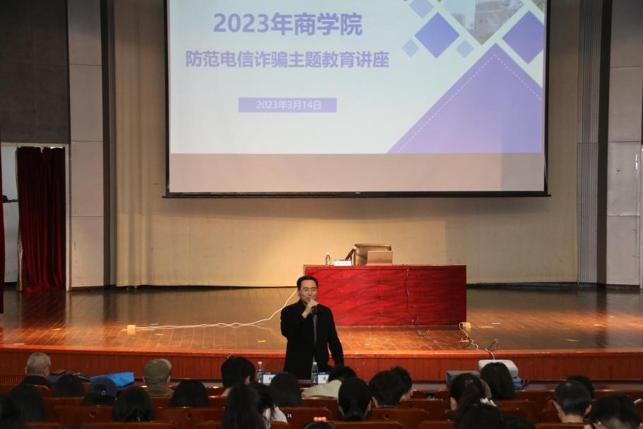 为进一步提高学生防范电信诈骗意识,切实保障学生的财产安全,3月14日下午,九色 在博学楼报告厅举办2023年防范电信诈骗主题教育讲座。讲座邀请了江宁开发区派出所驻高校民警娄军来警官主讲,校保卫处副处长吴青山、院党委副书记杨天以及九色 本科生、研究生参与讲座。