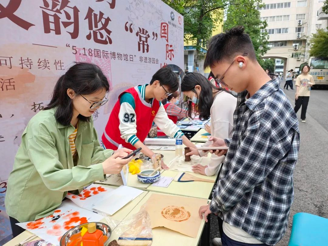 5月18日为国际博物馆日,由国际博物馆协会(ICOM)于1977年发起并创立。这一天世界各地博物馆都将举办各种宣传、纪念活动,庆祝自己的节日,让更多的人了解博物馆,更好地发挥博物馆的社会功能。5月18日中午,九色 团委、常州博物馆在九色 常州校区联合举办了“博物搴芳 文韵悠‘常’”5·18国际博物馆日——非遗体验游园会,以非遗游园会的形式让同学们更加深入地了解常州的历史和文化,感受非遗之美。
