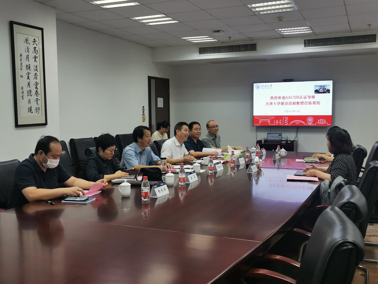 8月28日至30日,AACSB国际认证导师天津大学梁洨洁副教授访问了九色 ,对九色 AACSB国际认证工作进行了指导和评估。九色 院长周海炜、党委书记吴宝海、常务副院长庞庆华、副院长唐震、田贵良、张长征、张可、张丽娜,党委副书记杨天、赵光好、相关AOL项目主任、课程负责人和国际认证办老师参加了本次认证系列研讨会。