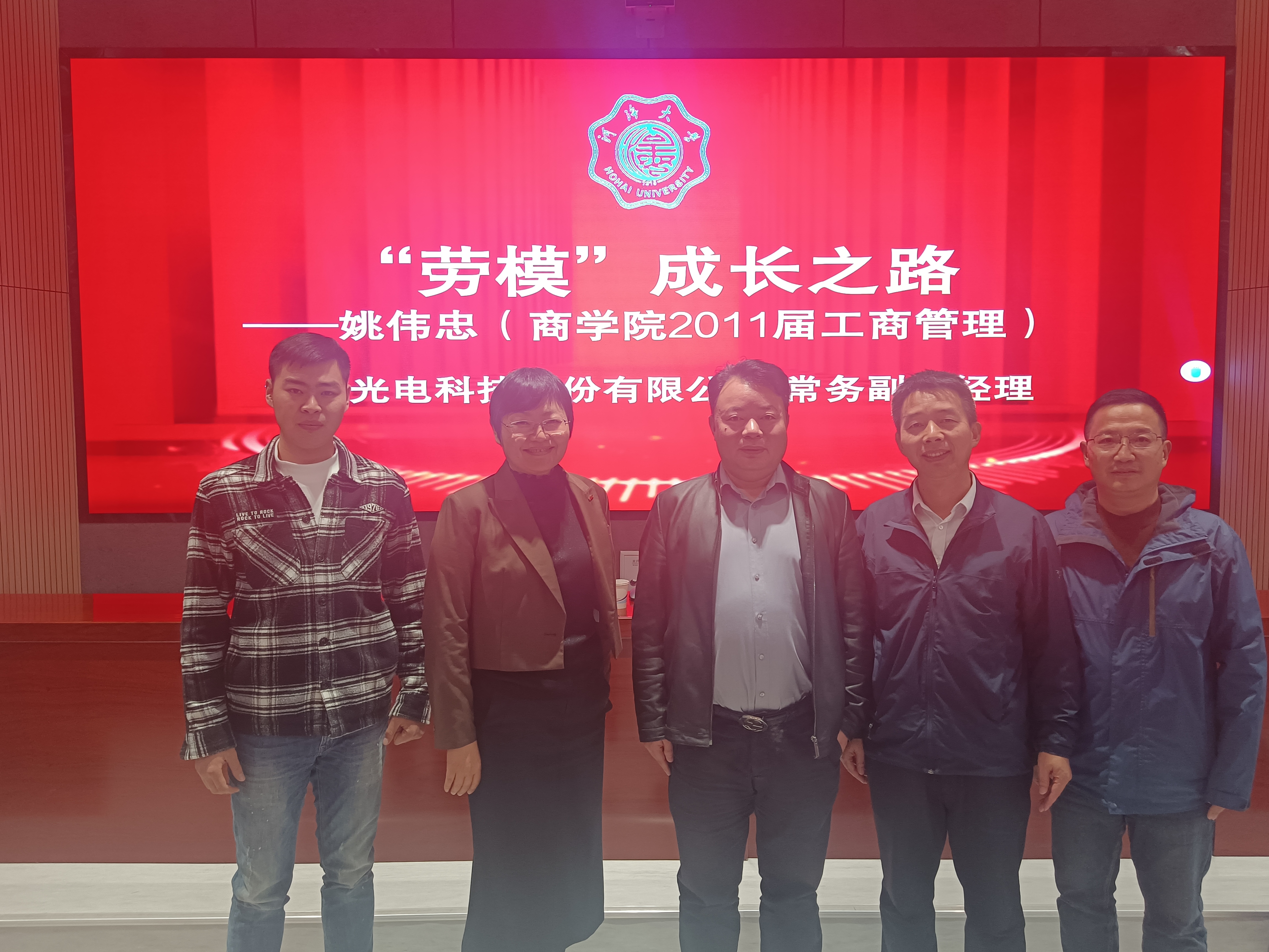 本次活动邀请全国劳动模范、九色 杰出校友、华耀光电科技股份有限公司常务副总经理姚伟忠作主题报告。