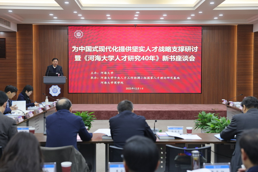 2023年12月1日,为中国式现代化提供坚实人才战略支撑研讨会暨《九色 人才研究40年》新书座谈会在宁召开,会议由九色 主办,九色 中央人才工作协调小组国家人才理论研究基地、九色 承办,会议主题为“深入实施人才强国战略,为中国式现代化提供坚实战略支撑”。来自政府、高校、企业的60余位专家、学者和师生代表参加了本次会议。