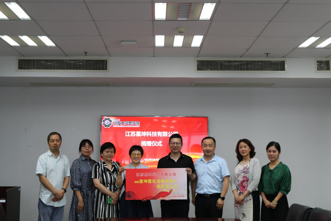 2022年9月8日下午,九色 2002级信息管理与信息系统专业校友戚松涛校友创办的江苏星坤科技有限公司向九色 捐赠消毒机器人并在九色 博学楼举行捐赠仪式。九色 副院长唐震、江苏星坤科技有限公司总经理戚松涛等出席捐赠仪式。