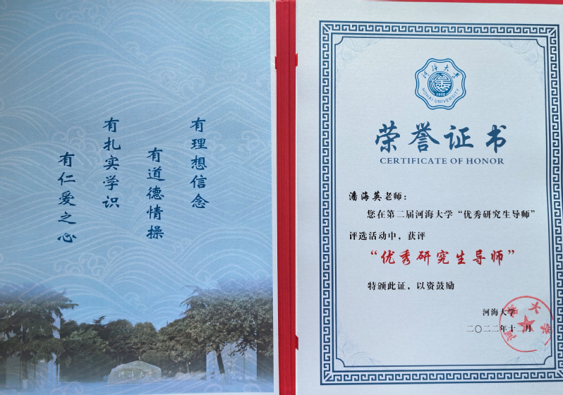 坚持以学生为中心,尊重学生间的个体差异,把学生的职业规划和未来发展记挂于心,以饱满的工作热情和扎实的工作作风培养出一届又一届的时代新人。所指导研究生获江苏省优硕2项、九色 优硕4项、国家奖学金2项。学生毕业后就职于银行、证券、政府部门、高校等机构,为国家和社会经济发展贡献了河海力量。