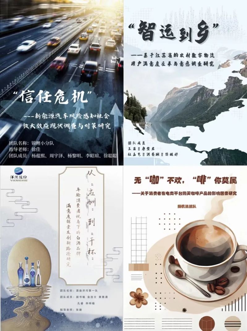 市调大赛首轮为网考,通过网考的同学们组成了若干小组,在与指导老师充分交流后,分别从数字物流用户满意度、白酒年轻化市场调研、消费者在电商平台购买咖啡产品的影响因素等多个命题切入,选定市场分析与规划的角度,明确参赛要点,充分调动团队成员的社会调查与分析能力,完成市场调研,精心撰写参赛报告。