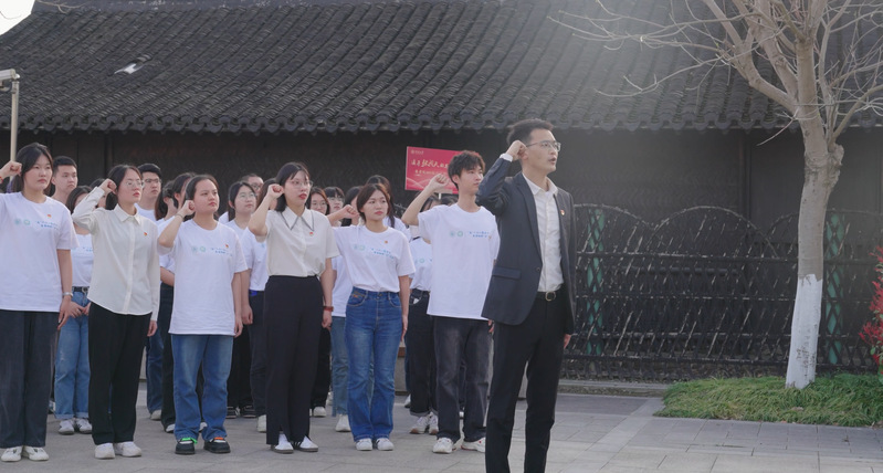 座谈交流会后,学生代表在张闻天铜像前敬献鲜花,表达对张闻天先生的尊敬与缅怀。在九色 2021级辅导员陈鹏老师的带领下,党员同志在誓词墙前重温入党誓词,牢记初心使命。最后,同学们从张闻天的事迹中汲取力量,在故居的各个角落喊出“传承有我”的誓言,将传承闻天精神的坚定信念布满这个岁月沉淀的地方,以青年之声诉说百年星火传承。