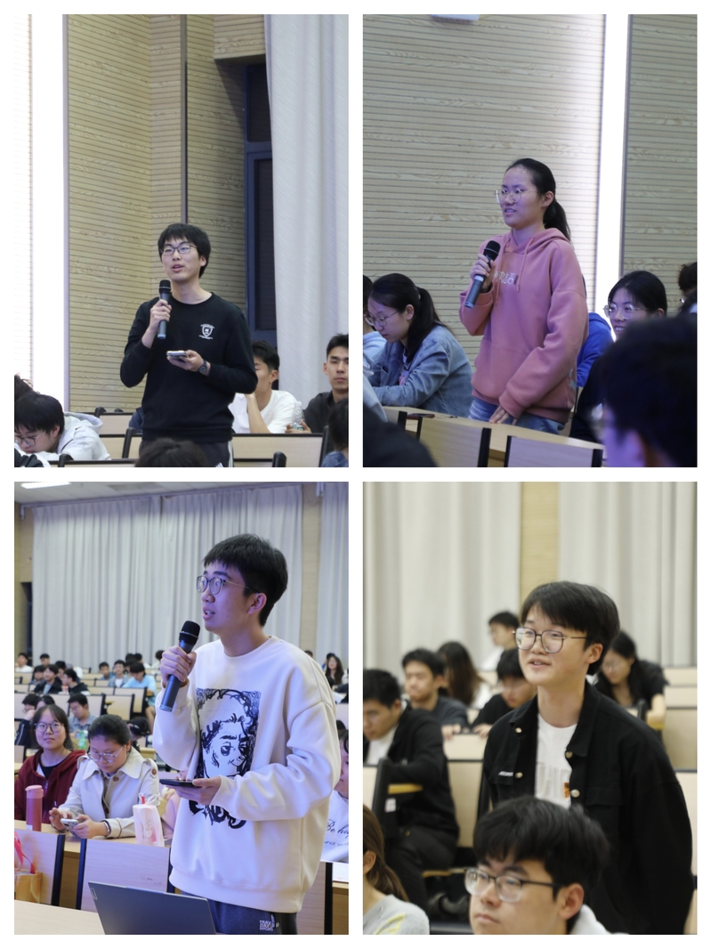 最后,主持人老师与嘉宾共同探讨了读研与直接就业的取舍这一热点话题,在自由提问环节,同学们积极发言,就“管培和社招之间的竞争”,“大学生创业活动”等话题与嘉宾热情沟通,气氛融洽,同学们从中收获颇多。