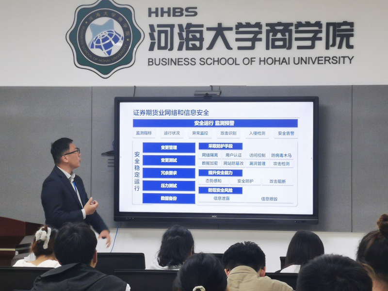 在最后的问答环节,徐先生与同学们展开了精彩的讨论。同学们就金融行业中常见的网络安全问题以及当前大环境下金融行业的就业形势提出疑问,徐先生则以切身经历,为同学们进行了详细的解答,鼓励大家关注金融行业的前景,合理规划好未来。通过本次活动,同学们对网络信息安全有了更为丰富的认识,也深化了对金融行业的理解。