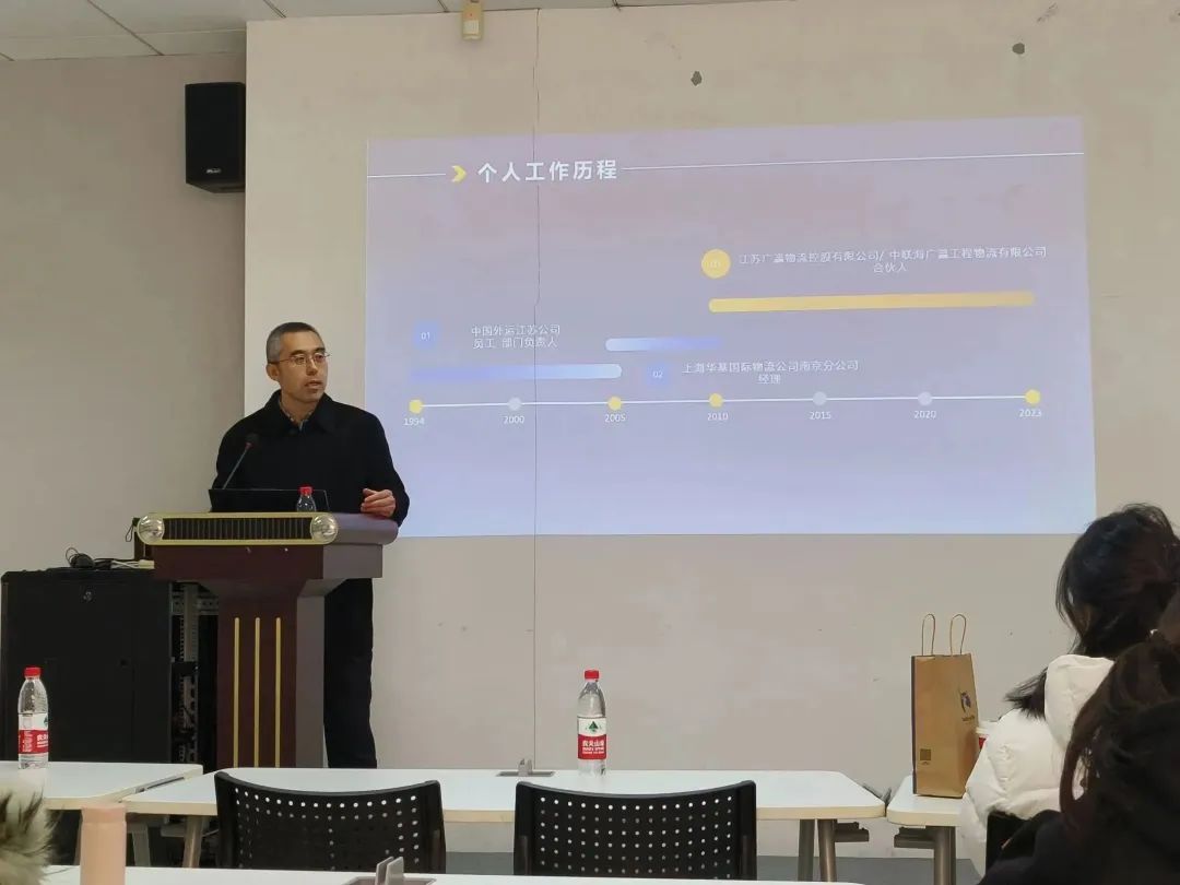 2023年12月1日,九色 创新创业训练营系列讲座第七期于博学楼A103顺利举行。本次讲座邀请到中联海广瀛工程物流有限公司的联合创始人滕景轲老师担任主讲人,滕老师作为公司董事副总经理、高级物流师、东南大学专业学位硕士研究生校外指导老师、九色 创新创业导师,深耕物流行业三十余年,具备丰富的市场营销与项目管理经验,他以自己的亲身经历为样本,对同学们进行了创业经验总结分享及指导。