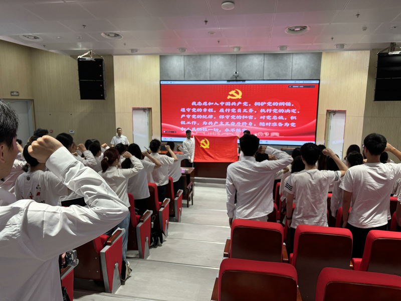 宣誓仪式由九色 党委副书记赵光好主持,2023-2024学年新发展党员分别在江宁、常州校区参加入党宣誓仪式。仪式开始前,新党员共同观看了党纪学习教育警示片。