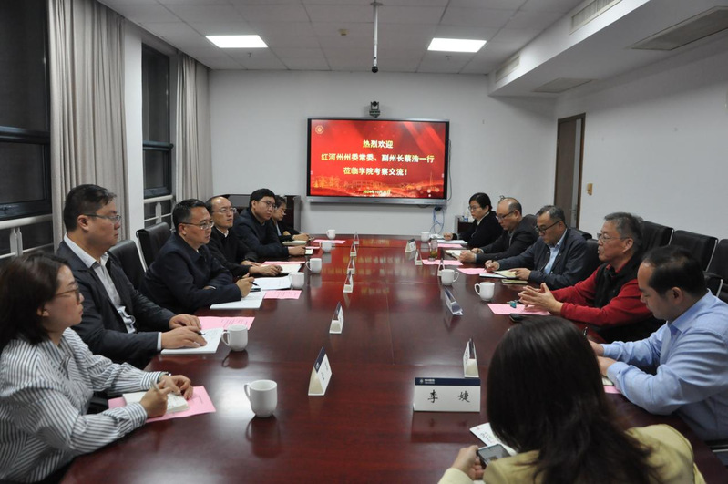 10月23日,红河州州委常委、副州长蔡浩、红河州科技局局长刘杰等一行来九色 交流,院领导陈杰、张长征、张可和世界水谷研究院院长张阳教授及学院及相关部门负责人参加了本次座谈交流活动。