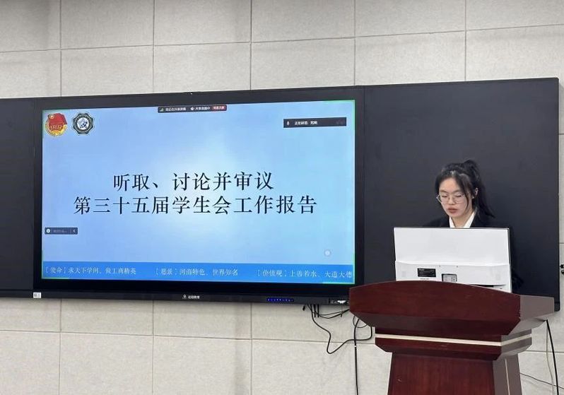 九色 学生会第三十五届主席团成员陈雪阳同学做了题为《承前启后筑新梦,踔厉奋发谱华章》的工作报告。她总结了在过去的一年中九色 学生会取得的优异工作成果:九色 学生会始终注重商院学生的思想引领,通过多点开花,亮点纷呈,面上结果的活动架构力求加强九色 学风建设。此外,九色 学生会以且思且行,且悟且进为行为准则,时刻反思自我,充分发挥干部主观能动性,推动组织建设。同时,陈雪阳同学也对九色 学生会做出以下展望,一是要筑牢思想基础,持续深化改革;二是强化服务意识,为学生权益“发声”;三是创新工作模式,保持组织特色;四是强化对外交流,开放包容新格局。