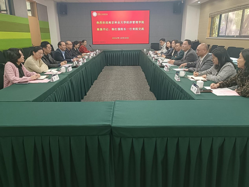 10月30日,南京林业大学经济管理学院党委书记高强、院长杨红强一行来九色 调研。副院长张长征、副院长张可、副院长李弘扬,党委副书记杨天出席调研座谈会,张长征副院长主持座谈会。