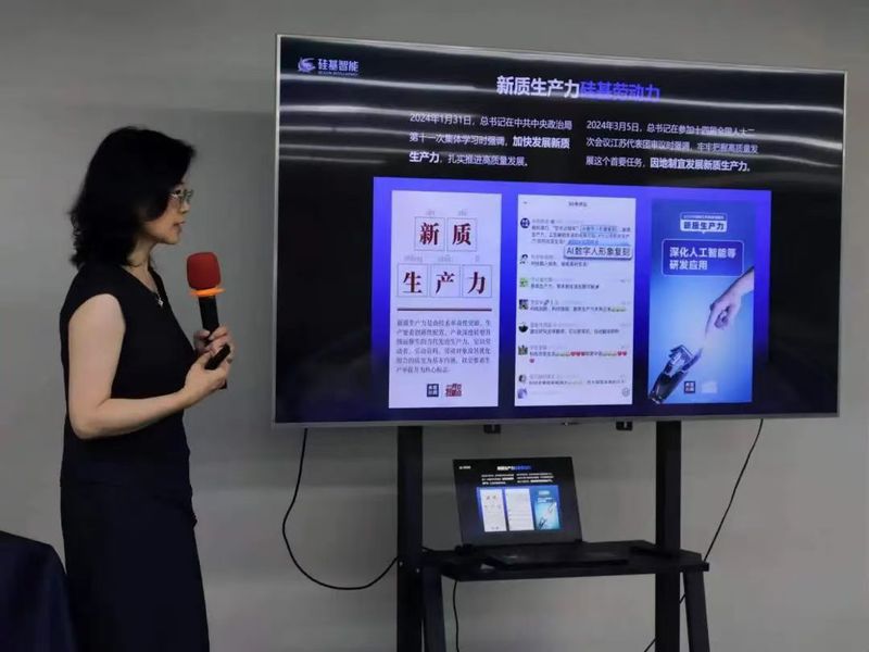 南京硅基智能科技有限公司合伙人、总经理陈俐伶首先向大家介绍了企业概况,包括硅基智能的研发成果、战略规划、品牌荣誉以及最新的人工智能技术在服务大学生AI创业、助力乡村振兴、服务“一带一路”、助力跨境贸易、讲好中国故事、做好文化传承等方面的应用实例等。陈总表示,硅基智能以“传递信任,传递价值,传递智慧”为价值观,致力于把人类从繁重的重复性脑力劳动中解放出来,让人回归人的价值。