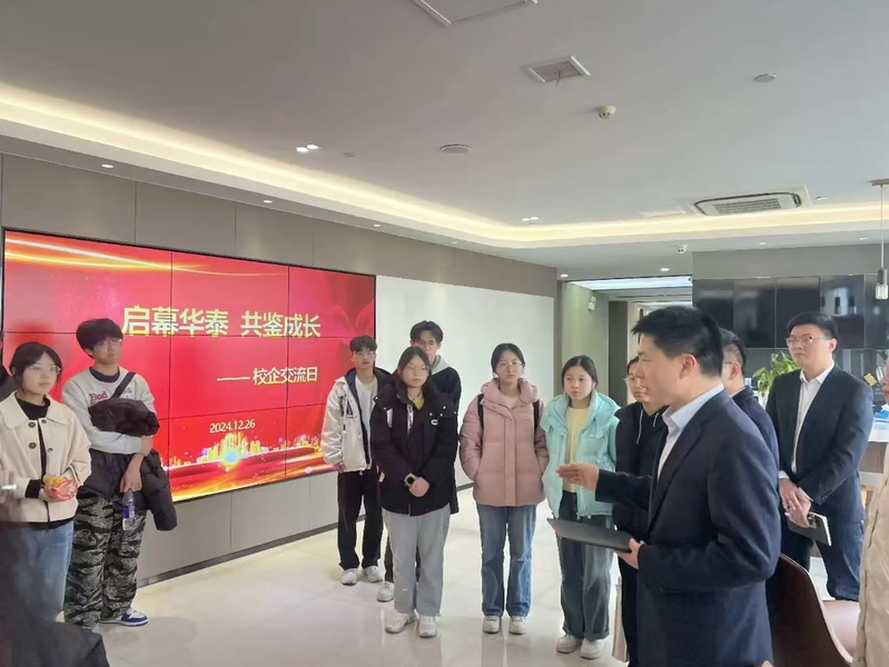 活动伊始,同学们在华泰证券南京软件谷财富中心总经理徐敏峰的引导下,首先参观了公司的工作环境及内部设施。宽敞明亮的办公区域、高科技的金融设备以及充满活力的团队氛围,都给同学们留下了深刻的印象。通过参观,同学们对华泰证券的发展历史、业务架构和不同岗位有了更加直观的了解,感受到了金融行业的前沿魅力和华泰证券在业界的领先地位。
