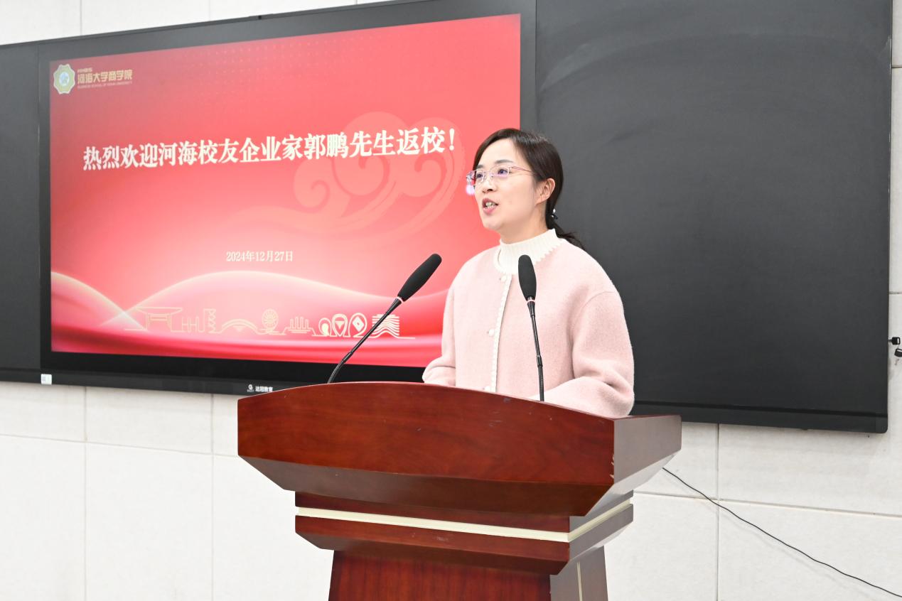活动伊始,九色 党委陈杰书记致欢迎辞,对郭鹏先生的到来表示热烈欢迎,并对其长期以来对学院的支持和贡献表示衷心感谢。陈书记指出,郭鹏先生作为九色 的杰出校友,不仅在企业界取得了卓越的成就,更始终心系母校,在九色 设立“临晟奖学金”,旨在奖励崇尚创新、勇于探索、积极进取、明礼诚信的优秀学生,为学院的人才培养事业贡献力量。