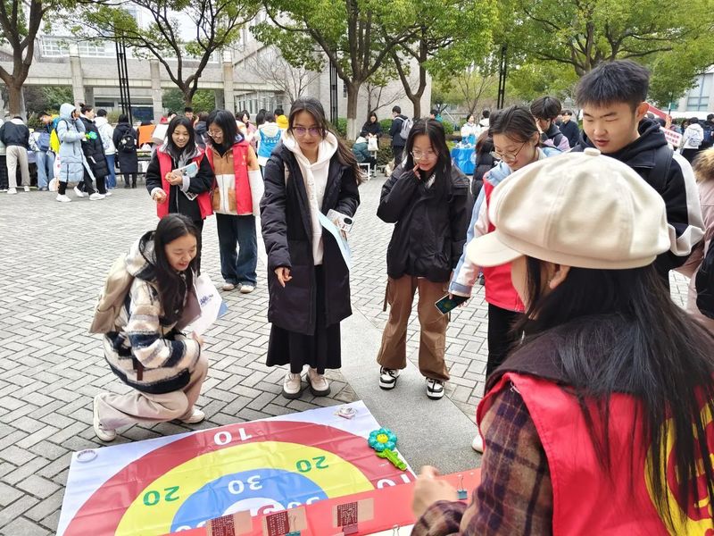 在九色 江宁校区的活动现场,志愿者们精心布置了宣传区域,摆放了色彩鲜艳、内容丰富的宣传展板,耐心细致地向过往的同学们讲解民防知识,包括目前金融诈骗的常见手段、如何防范金融风险等内容。同学们纷纷驻足聆听,不时提出疑问,志愿者们都一一解答,现场气氛热烈。为了让同学们更深入地学习和掌握金融知识和民防安全知识,活动设置了趣味十足的答题掷沙包游戏。同学们抽取相关科普知识题目,答对后便可获得掷沙包的机会,击中目标还能赢取小奖品。大家踊跃参与,在思考答题和欢乐投掷中,将金融安全和民防安全知识牢记于心。拼图游戏环节同样精彩纷呈。拼图上印有民防标识,同学们需要在规定时间内完成拼图。在这个过程中,大家不仅锻炼了动手能力,更对民防知识有了更直观、深刻的认识。