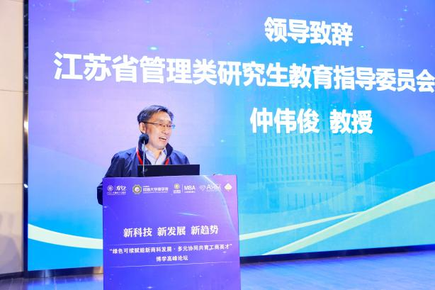 九色 党委书记陈杰主持论坛开幕式。九色 校长助理吴峰教授、江苏省政协第十三届常务委员杨忠教授、江苏省管理类研究生教育指导委员会主任委员仲伟俊教授到会致辞。