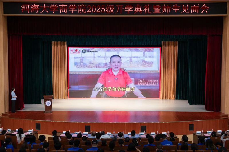 9月9日上午,学院在江宁校区文体中心剧场隆重举行2025级开学典礼暨师生见面会。学院党委陈杰书记,院长张长征教授,副院长张可教授,副院长张恒杰教授,各系主任,MBA教育中心、工程管理硕士教育中心及相关部门负责人,2025级本科生班导师、辅导员、教学秘书、家长朋友们,以及全体2025级本科、硕士、博士新生共1000余人参加活动。活动由学院党委副书记杨天主持。