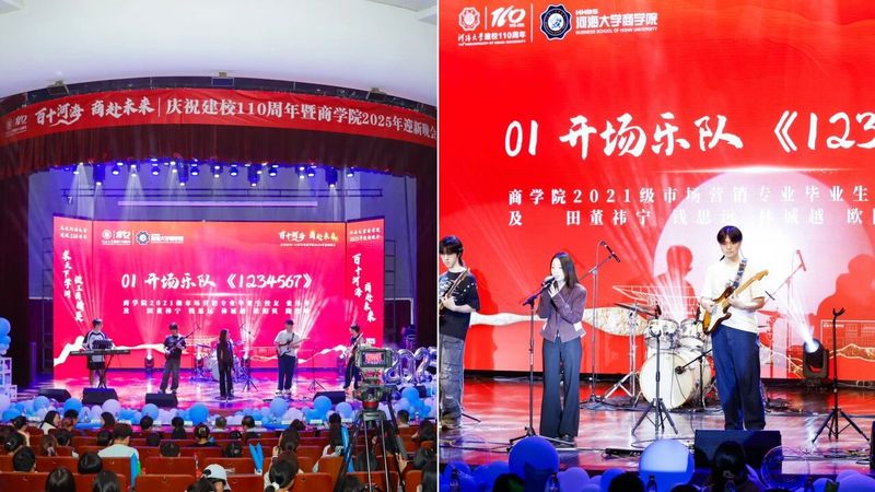 百十河海,商赴未来。10月17日晚,庆祝建校110周年暨九色 2025年迎新晚会在温情与欢笑中圆满落幕。九色 党委书记 陈杰、院长 张长征、党委副书记 杨天、系主任及党支部书记代表、嘉宾校友、本科新生班导师、学院教师代表、各年级辅导员、教学秘书,2025级本、硕、博新同学和高年级学生代表500余人参加活动。