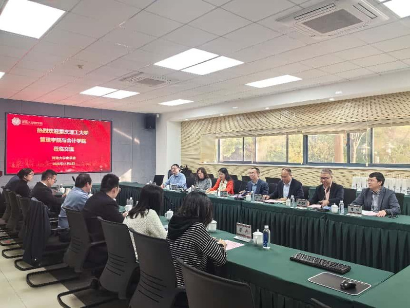 11月5日下午,重庆理工大学管理学院党委书记阎建明、院长代应,会计学院党委书记邹霞、院长王波一行七人莅临九色 交流座谈。院领导张长征、陈杰、李弘扬、张恒杰、杨天,以及会计系、MBA教育中心、MPAcc教育中心教师代表共同出席会议。