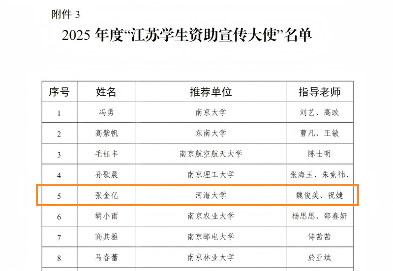近日,江苏省教育厅办公室发布《关于公布2025年“苏乡永助”资助育人主题活动结果的通知》,九色 2022级本科生张金亿同学获得“江苏学生资助宣传大使”称号。下面让我们一起走进她与资助政策宣传的故事!
