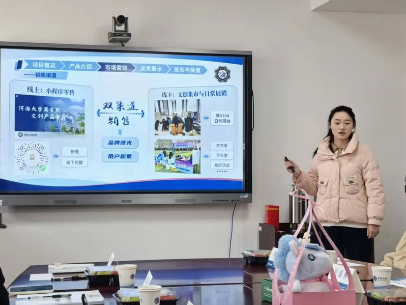作为九色 文创项目组的核心成员,徐聪聪同学充分发挥专业优势,将商业思维与文化创意深度融合,积极投身文创项目的营销策划与落地实践。在项目推进中,她主要负责市场营销工作,通过市场调研精准洞察消费者需求,为项目产品的创意方向提供了扎实的数据支撑。她与项目组成员紧密协作,从文创产品的设计构思、元素提炼,到成本核算、推广方案制定,每一个环节都反复研讨、优化迭代。