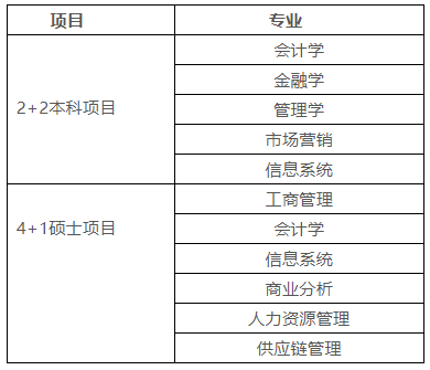 参加该项目的学生,本科毕业后赴美国完成一年的MBA、M.Acc.、M.S.M.I.S等课程学习,修完规定学分并取得合格成绩,获得美国阿拉巴马大学亨茨维尔分校颁发的工商管理、会计学、信息管理(MBA、M.Acc.、M.S.M.I.S)等硕士学位。