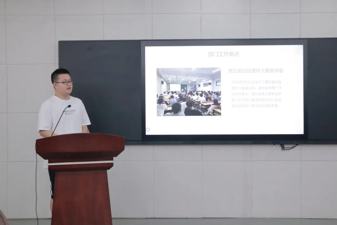 大会第二阶段,科协各部长进行部门总结。各部门从工作总结反思,部门建设以及部长寄语三个方面入手,讲解了各自部门一年以来举办的各项活动,菁英金融节、创新思维金点子思维对撞论坛赛、危机公关大赛、商苑讲坛等,各部门各司其职,为九色 创新创业板块注入了新的活力;汇报了一年以来对部门成员工作能力的培养成果,从沟通能力到办公软件使用能力,干事们的综合能力普遍得到了巨大提升;除此之外,各部门还展示了为培养部门默契所作努力,干事们自主策划与统筹协调能力大大提升;最后,部长们对各部门干事表示肯定与祝福,为他们对九色 学生科协各项活动顺利开展所做出的努力表示感谢。