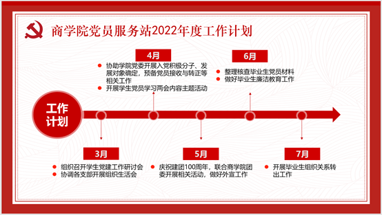 学院党员服务站站长李菲菲从统筹学生党支部建设、学生党员培养教育考察以及学生党建活动设计等几个方面,针对2022年度学生党建工作计划进行了详细介绍。持续完善学院党委形成的以“强化思想教育,搭建展示平台,突出模范作用,培养优秀人才”为思路的党建工作模式,进一步明确党员服务站的工作宗旨与工作方向。