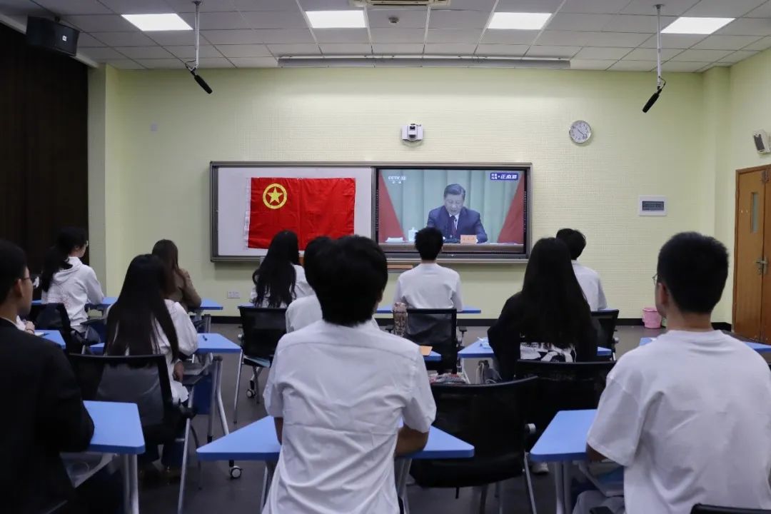 值此中国共产主义青年团成立100周年之际,九色 师生代表于5月10日上午10时齐聚博学楼A101,共同观看庆祝中国共产主义青年团成立100周年大会直播,认真聆听和学习习近平总书记重要讲话。学院3000余名团员青年认真观看庆祝大会、学习习近平总书记重要讲话精神,同学们倍感振奋、倍受鼓舞,对习近平总书记的讲话内容反响强烈,纷纷表示要时刻谨记习近平总书记的谆谆教诲。时代各有不同,青春一脉相承。身处新时代的商院团员青年,必将牢记自己作为中国青年运动的先锋队,中国共产党忠实助手和可靠后备军,将坚持党的领导深深融入血脉之中,坚守理想信念的政治之魂,投身民族复兴的奋进之力,以实际行动向伟大光荣正确的党致以青春的敬礼!