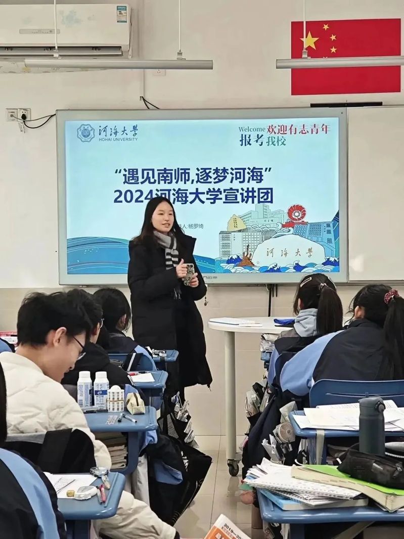 为向高中母校在校生分享九色 求学经历,宣传河海文化,弘扬河海精神,“遇见南师·逐梦河海”宣讲团于2024年1月26日返回母校南京师范大学苏州实验学校,面向高二以及高三学子进行了热情洋溢的“源泉工程”宣讲。