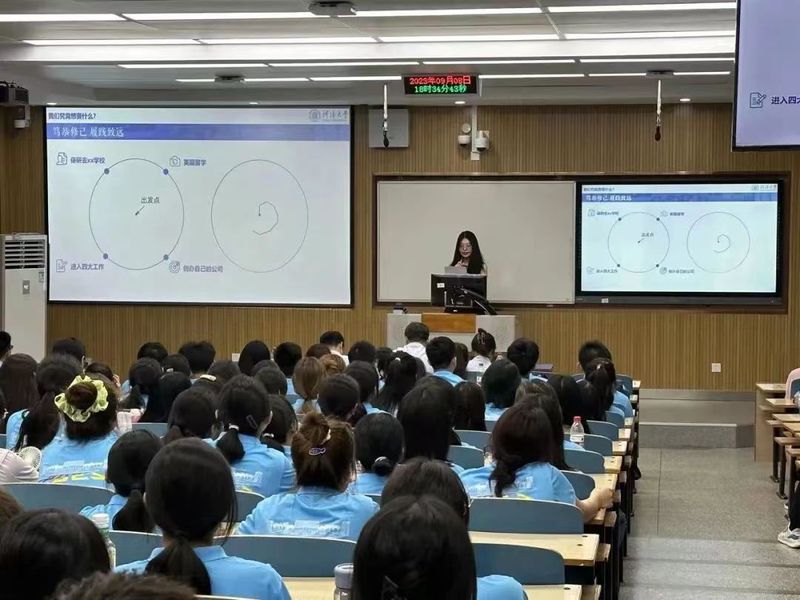金希玥女士以“寻找未来的方向”为主题,通过讲述自己在本科和研究生阶段的学习历程以及在IBM的工作经历,帮助同学们对“我的目标是什么”、“实现目标的路径是什么”这两个问题进行深入思考。她鼓励同学们要勇于尝试新的挑战,不断积累经验、提升能力,为实现自己的职业目标做好充分准备。