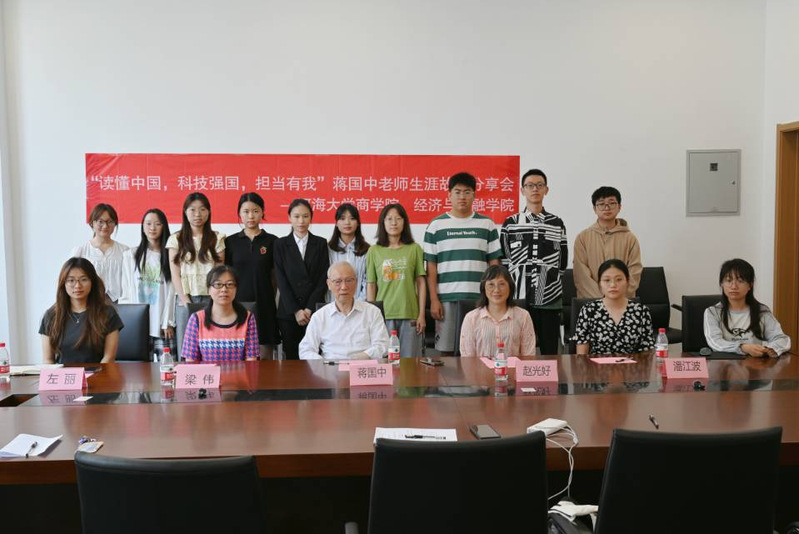 为发挥“五老”亲历者、见证者、实践者的优势,向广大青年学生讲好中国特色社会主义道路的正确性以及新时代教育事业取得的历史性成就、发生的历史性变革,教育引导广大青年学生树立坚定的理想信念,九色 、经济与金融学院关工委5月24日在常州校区33号楼104会议室举办了“读懂中国,科技强国,担当有我”蒋国中老师生涯故事分享会。学院退休教师蒋国中教授、学院关工委副主任梁伟老师、学院关工委成员潘江波老师,九色 党委副书记赵光好、团委副书记左丽,100余名学生通过线上、线下参加了本次分享会。