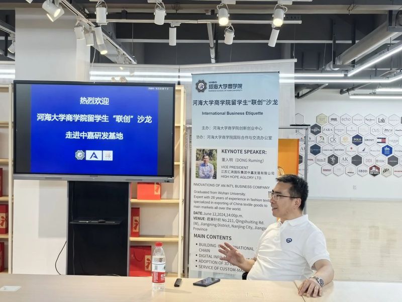 为了增进九色 留学生对国际贸易和产品创新的理解,激发其创业热情和创新潜能,2024年6月12日九色 创新创业中心开展了九色 留学生“联创”沙龙2024年第五期活动。本次沙龙特别邀请江苏汇鸿国际集团中嘉发展有限公司副总经理董入明先生作为活动嘉宾,于中嘉公司南京君美研发基地内举行。