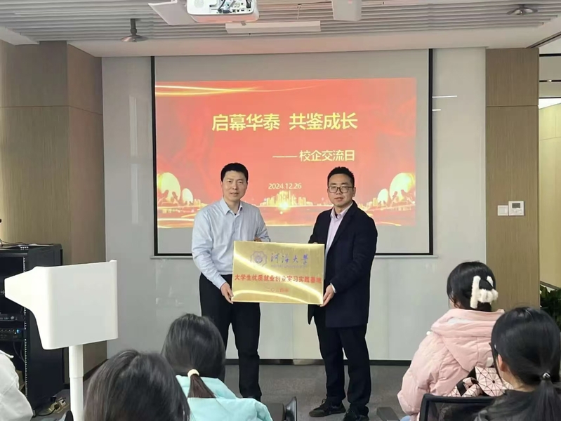 随后,班级团支书顾津铨汇报了2023级会计学四班的基本情况和在过去一年中所取得的成绩。最后,张院长向华泰证券颁发优质就业实习基地铜牌,期待有更多商院学子走入华泰证券实习、就业,促进理论与实践的深度融合,校企合力共同培养更多优秀金融人才。