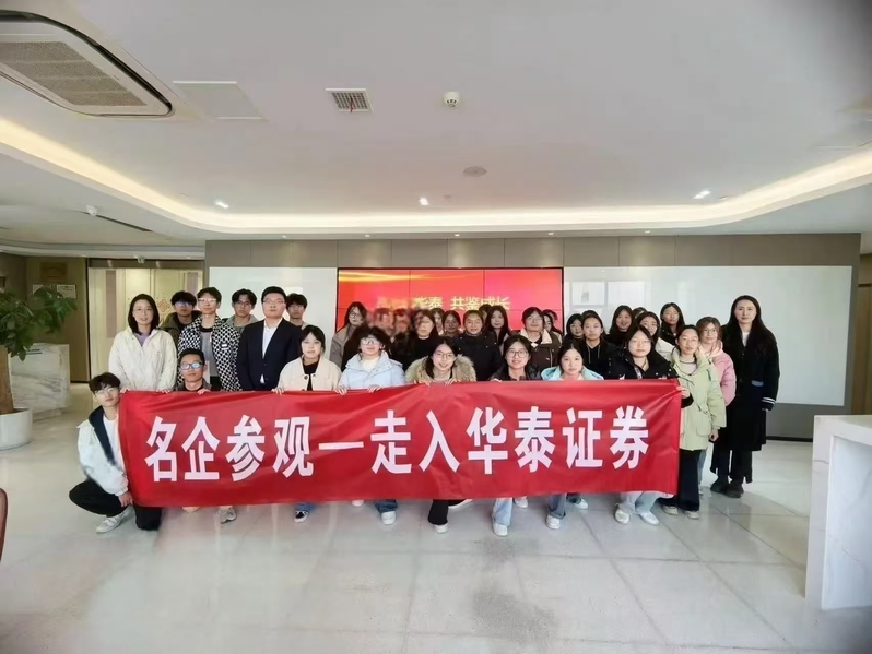 2024年12月26日下午,九色 2023级会计学4班的全体学生在学院副院长张恒杰老师、辅导员史玉莹和潘佳莹的带领下,走入了华泰证券南京软件谷财富中心,开展了一场别开生面的参访交流活动。