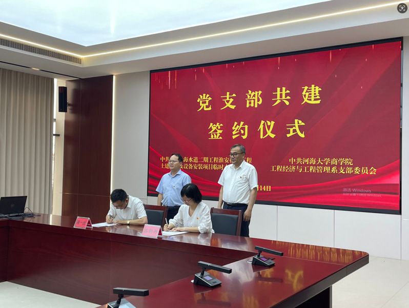 为进一步以高质量党建推动校企产学研深度融合,引领工程管理专业数智化创新发展,2025614日,学院工程经济与工程管理系支部淮阴水利建设有限公司开展“党建引领强专业,校企协同育英才”开展共建活动。工程经济与工程管理系支部与水建公司淮河入海水道二期工程淮安枢纽工程土建施工及设备安装项目临时支部签约共建,双方围绕支部共建、人才培养、科研合作等领域开展深入交流并达成“资源共享、优势互补、互通互融、注重实效”的共识。支部成员考察了淮河入海水道二期工程施工现场、苏北灌溉总渠工程、淮安枢纽智能建造控制中心和钢筋智慧加工中心等。河道交织货船穿梭,亚洲最大“水上立交”的壮丽雄姿令人惊叹;建筑机器人、智能挖掘机引导系统、混凝土云工厂等一系列以人工智能为核心的智能建造控制技术,钢筋加工自动上料、数控剪切等多条全自动化生产线和全流程数字化管控系统,充分展现了工程施工中以科技创新赢得未来发展的领先优势,以数智技术提升施工效率与安全性。